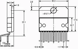 Микросхема К174УН25 представляет собой усилитель мощности низкой частоты 2 х 10 Вт.